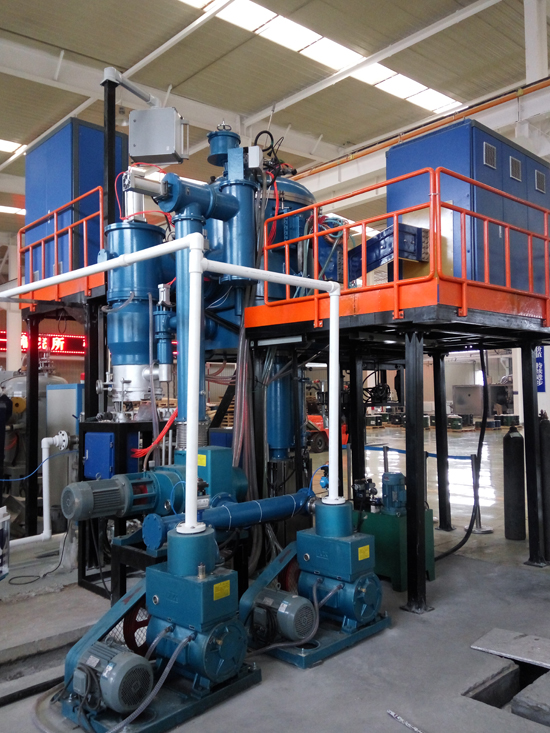 真空感應(yīng)凝鑄爐是利用中頻感應(yīng)加熱原理,在真空或保護(hù)氣氛下,將稀有金屬或特種合金在熔煉坩堝內(nèi)熔化后,澆入凝鑄模具內(nèi),凝鑄模具通過(guò)電阻加熱進(jìn)行恒溫保溫,在恒溫狀態(tài)下,由模具升降機(jī)構(gòu)通過(guò)一定速度緩慢將模具移出保溫感應(yīng)器,通過(guò)模具底部托盤(pán)水冷及外部水冷罩將金屬液體冷卻凝固;是為各種稀有金屬及特種合金及其它材料的工業(yè)生產(chǎn)和試驗(yàn)而設(shè)計(jì)的;真空感應(yīng)凝鑄爐還具有傳統(tǒng)鑄錠功能,能實(shí)現(xiàn)緩冷鑄棒和傳統(tǒng)鑄錠的快速切換。